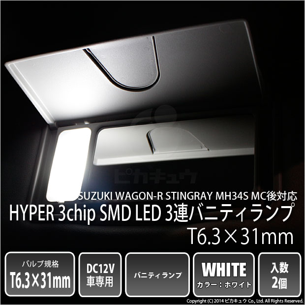 価格: 1,280円 レビュー評価:5.0 レビュー数:1 スズキ ワゴンR スティングレー MH34S MC後対応 バニティランプ T6.3×31mm型 HYPER 3chip SMD LED 3連バニティランプ 1セット2個入り LEDカラー:ホワイト 高輝度高拡散 HYPER 3chip SMD LEDを3個搭載したバニティランプ特殊球。 サンバイザーのミラー部分のバニティランプ(バイザーランプ)に多く採用されている ヒューズ型の特殊電球の互換LEDバルブです。 9個の発光点から放たれる圧倒的な明るさとスマートなホワイト照射光。 純正球との交換で、お手軽に車内空間をドレスアップが可能です。 明るいホワイト光なのでメイク直しにも適しています。 ※車両型式が一致していても、特別仕様車などの条件により、商品ページに記載されている情報と 異なる場合がございますので、必ずご購入前に車両に装着されているバルブの形状をご確認ください。 商品仕様 商品名 S (更新日時:2019/04/11 08:41) Supported by 楽天ウェブサービス |